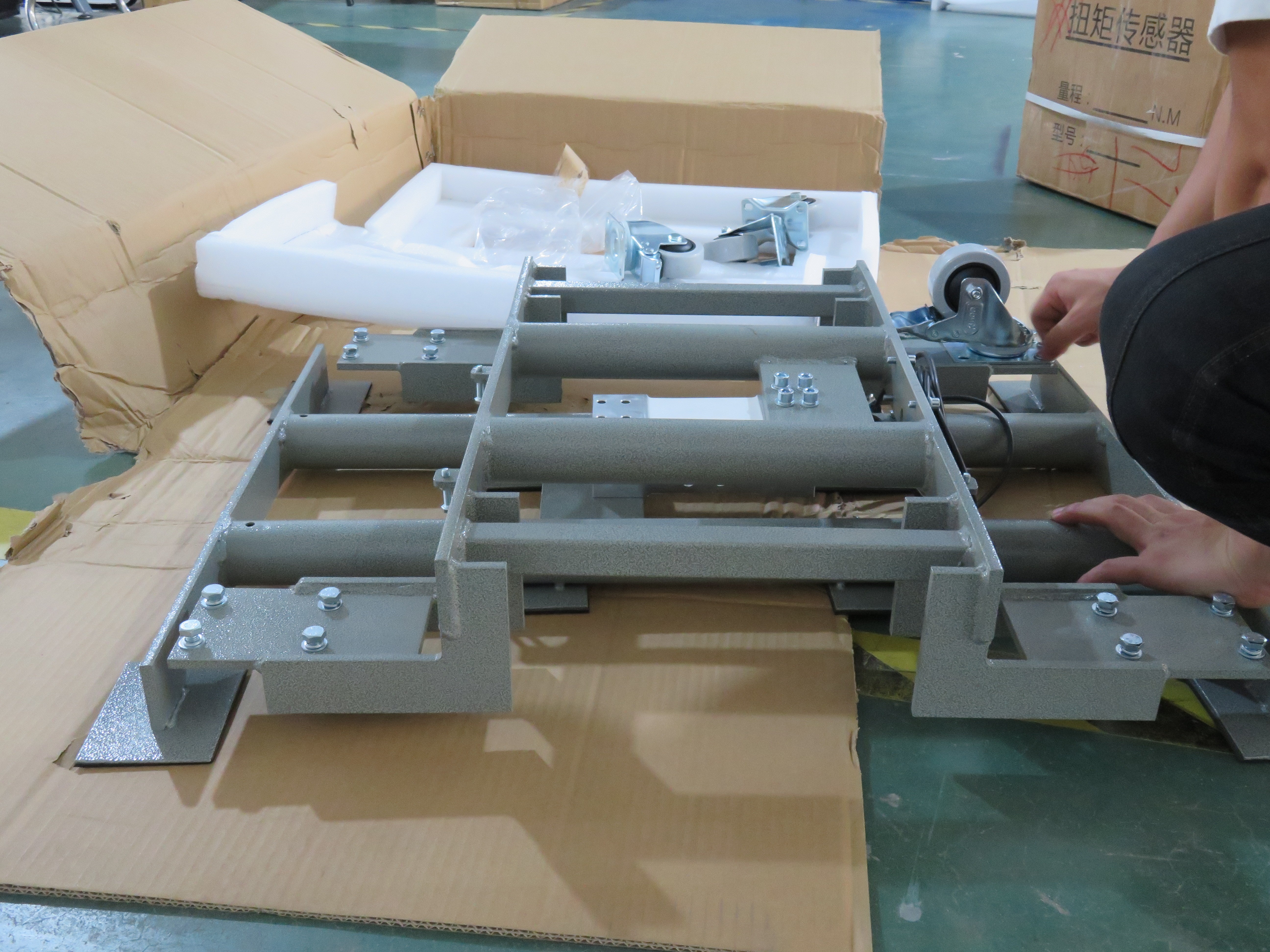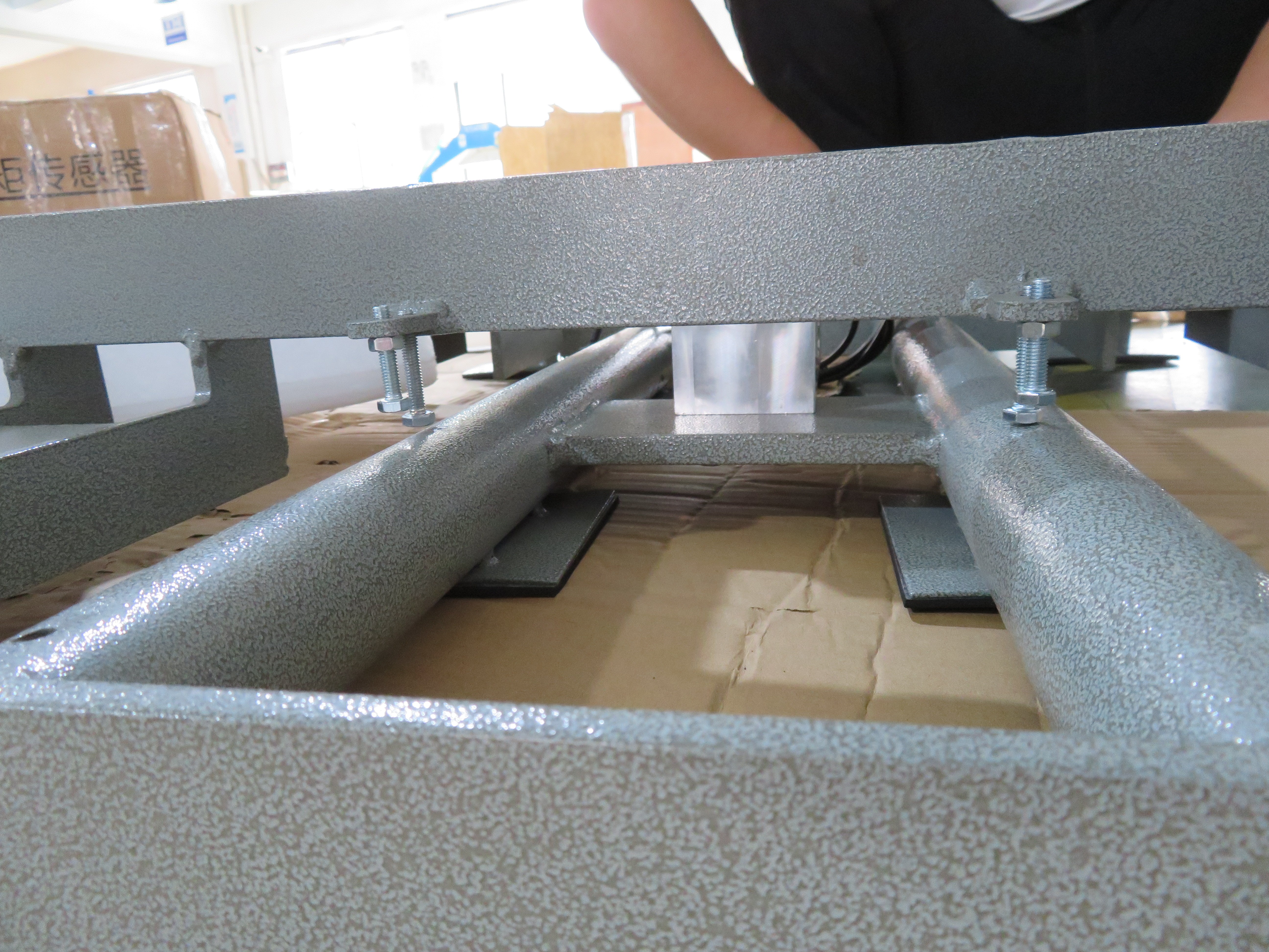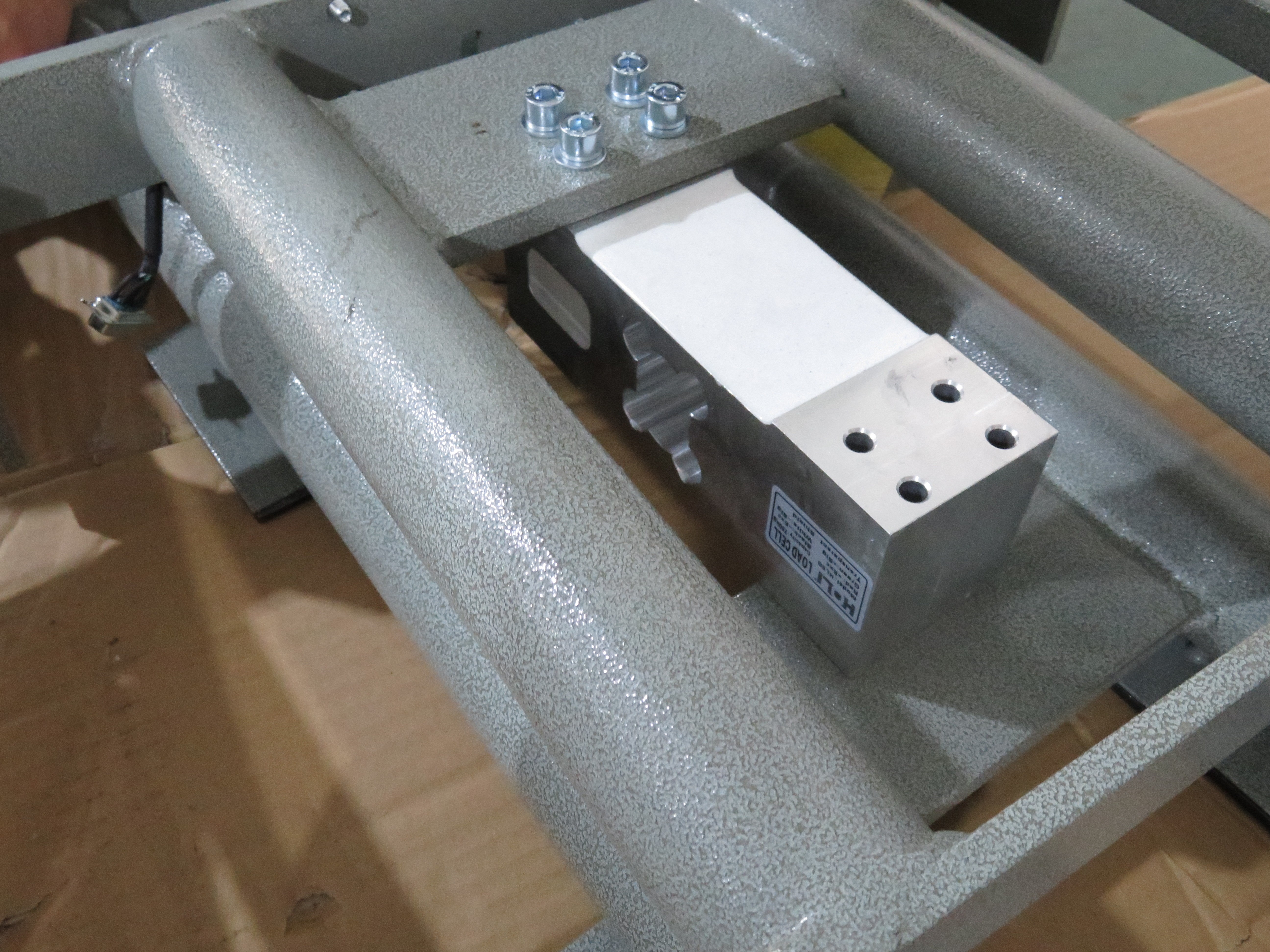 我司的這款電子臺秤由稱重顯示儀表、稱重傳感器、秤體等三部分組成。其中,秤體是被稱為物體與轉(zhuǎn)換元件之間的機械、傳力復位系統(tǒng)、包括接受被物體載荷的承載器、傳力復位結(jié)構(gòu)、限位裝置的等,它是電子臺秤的主要承載部件,可以起到承受物體重量的作用。秤臺和轉(zhuǎn)力結(jié)構(gòu)負責將物體物體的重量的傳送給稱重傳感器。一次儀表稱重傳感器安裝在臺秤支架中間位于臺面下面,將被稱物體的重量按一點的函數(shù)關(guān)系轉(zhuǎn)換為相應(yīng)的電信號,然后將電信號傳遞給二次儀表稱重顯示儀表。經(jīng)過處理后儀表直接顯示被稱物體的重量?啥ㄖ贫喾N非標臺秤