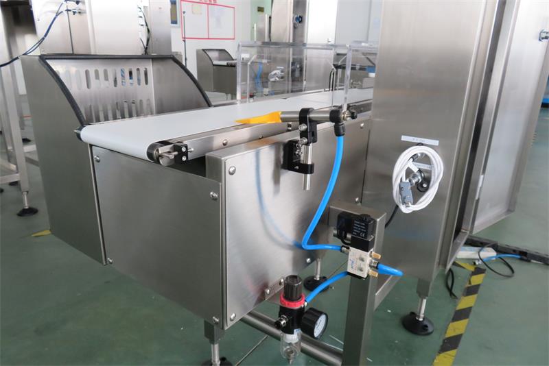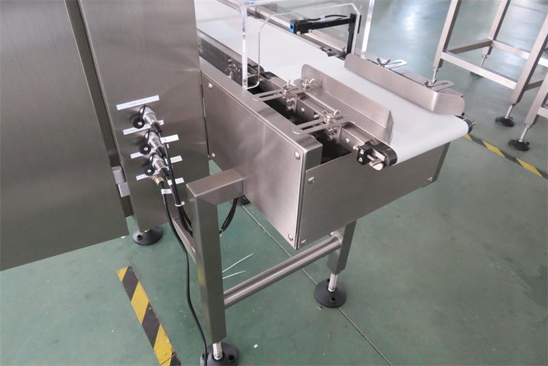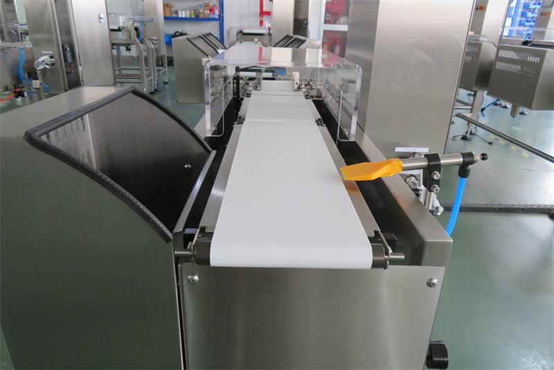 這款配了輸送帶的檢重秤,該廠家要求的是需要推板式來(lái)檢測(cè)重量不合格的產(chǎn)品自動(dòng)進(jìn)行剔除,他這個(gè)是一個(gè)橢圓形輸送帶,其中搭配兩個(gè)檢重秤。速度可達(dá)一分鐘60個(gè)(支持非標(biāo)),范圍是5-3000g,精度在±0.5g。他的產(chǎn)品重量基本都在60-80g。我司工廠技術(shù)師傅用了大概8天時(shí)間調(diào)試好、裝配好后,在今天完工發(fā)貨。