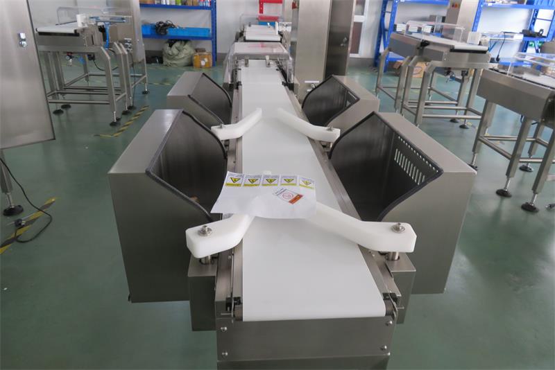 下面這幾張圖是我司工廠現(xiàn)貨圖分別是 多列撥桿式SG-D300檢重秤 和 氣吹式SG-150檢重機(jī)